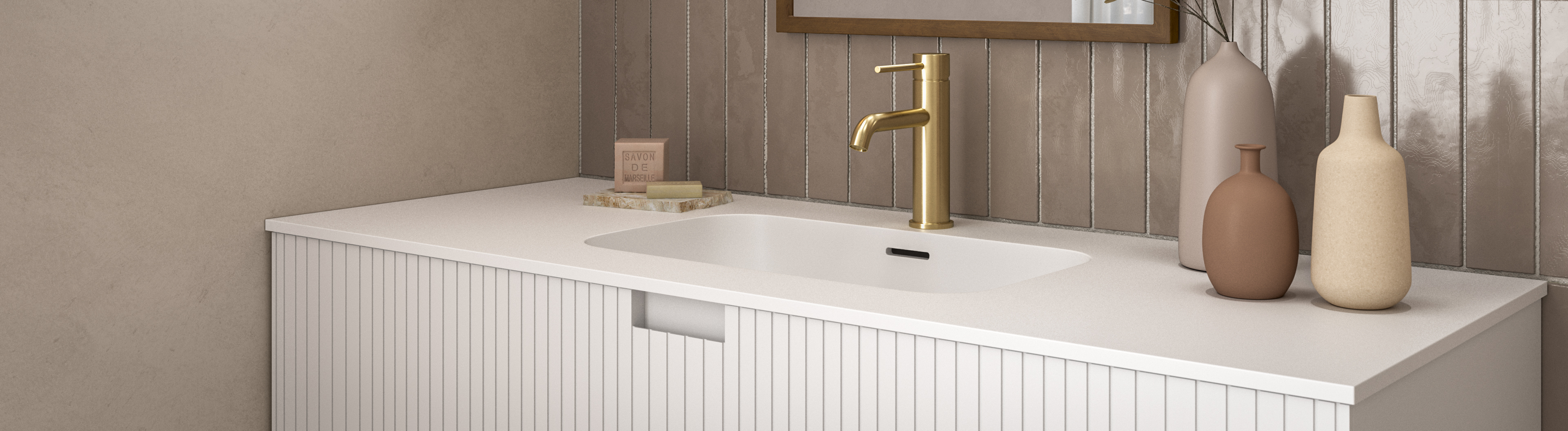 Avalon introduces elevated design with its signature vertical fluting, adding depth and texture to the bathroom. Its sleek floating form offers a modern statement that feels both versatile and timeless.