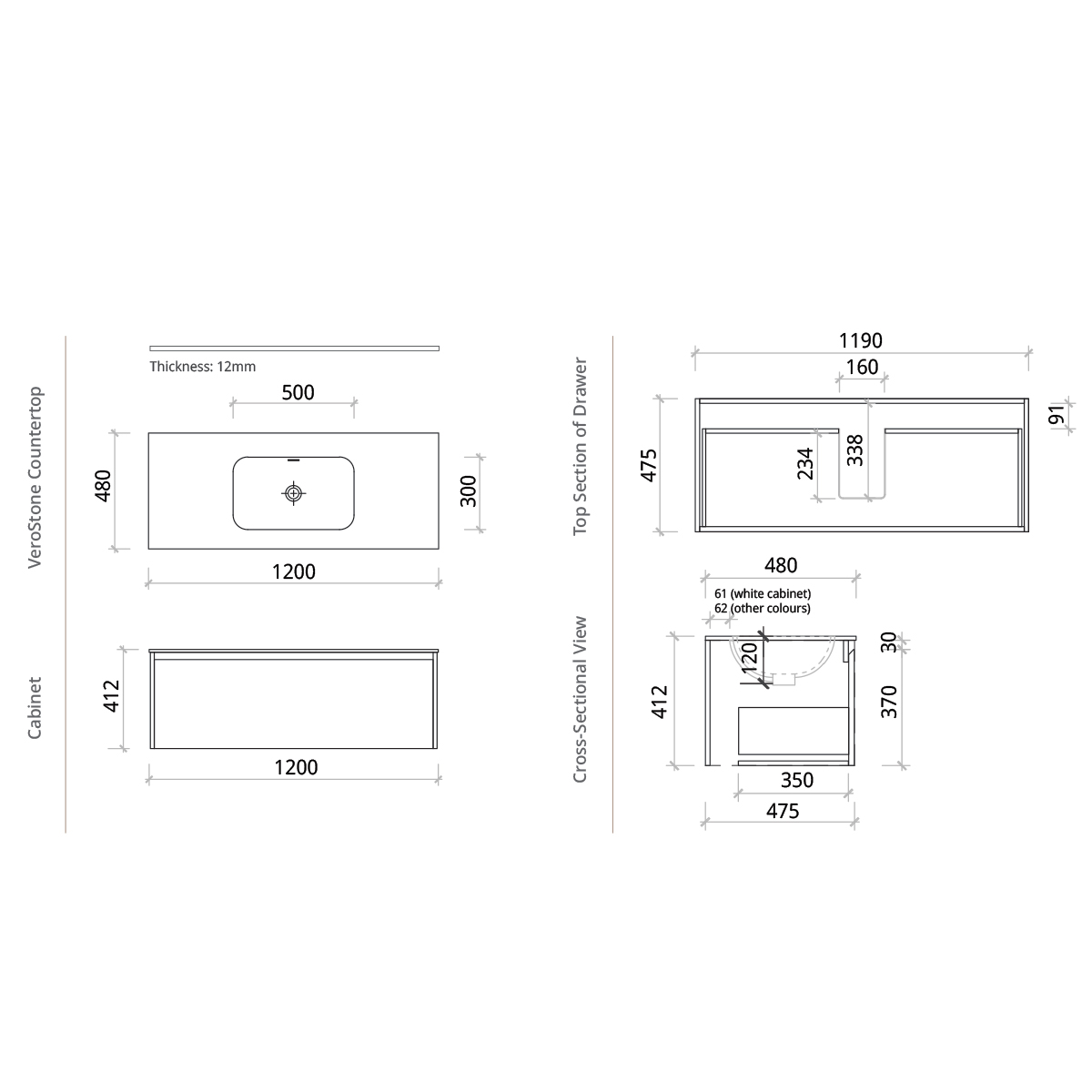 - Size: 1200 (W) x 480 (D) x 412mm (H)