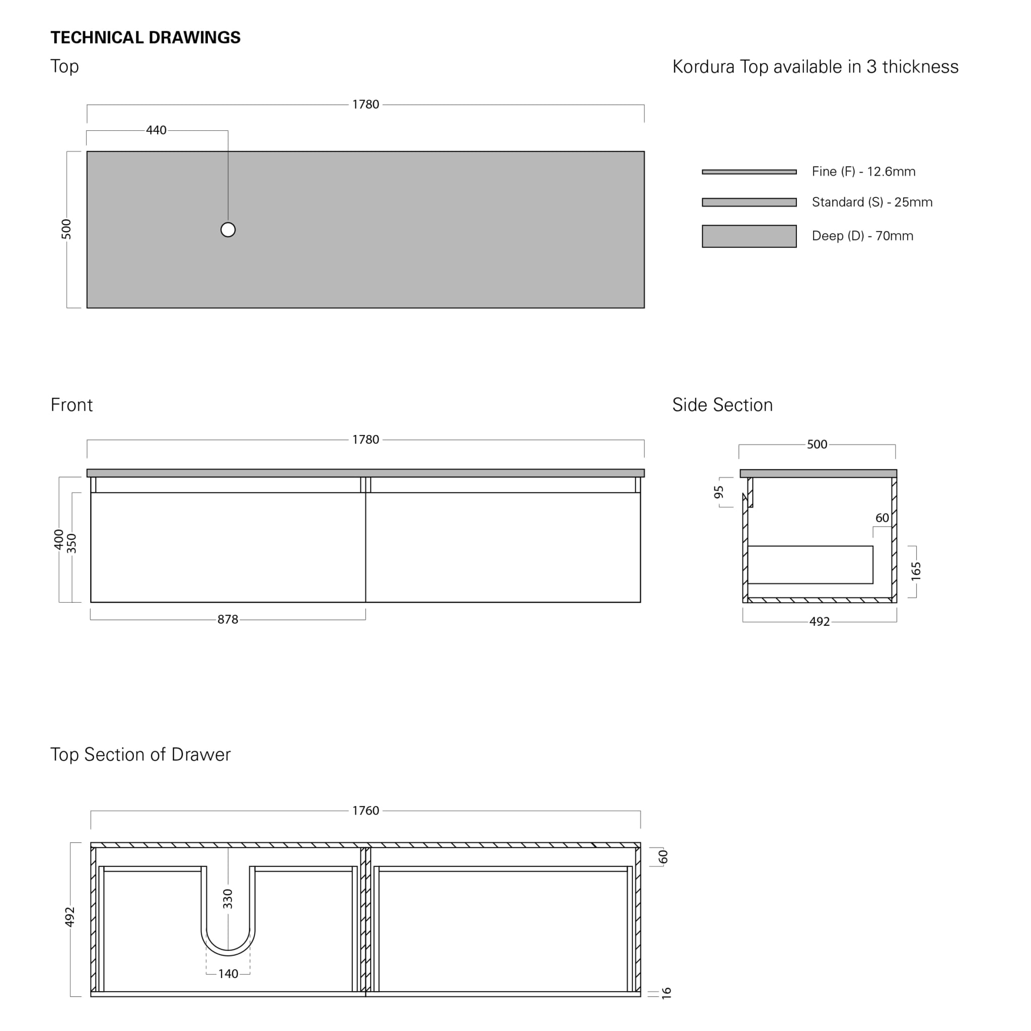 Dimensions: W1780mm x H400mm x D500mm