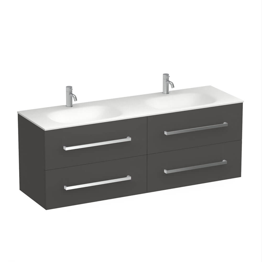 Add a touch of bespoke design to any luxury bathroom with the Reflex Spio 1500 4 Drawer Wall Vanity with Double Basins. Featuring the Spio Solid Surface basin and 20 colour options to choose from.
