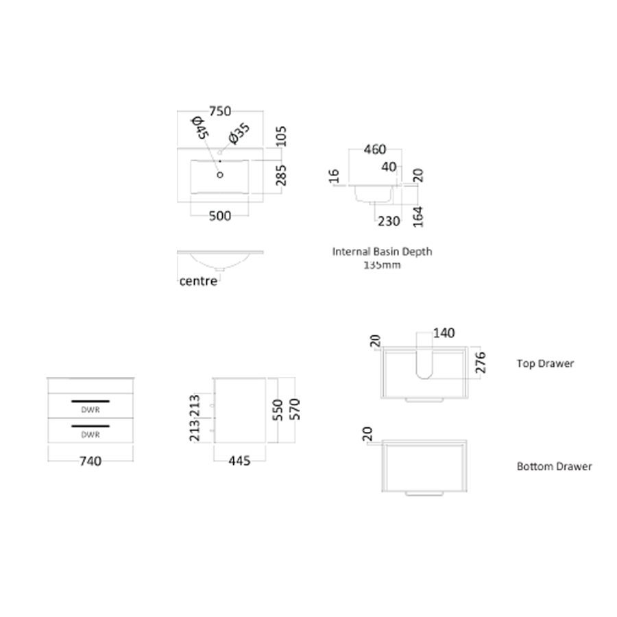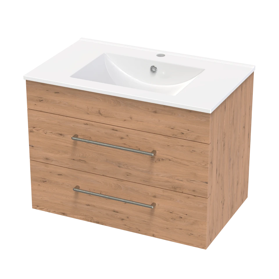 Compact yet functional, the Parker 750mm Two Drawer Wall Hung Vanity is ideal for maximising storage in smaller spaces. Its durable Vitreous China top and soft close drawers offer everyday convenience. Cabinet available in White, Black, or Oak, with three handle finish options. Made in New Zealand using FSC® certified NZ Radiata Pine and moisture resistant board.