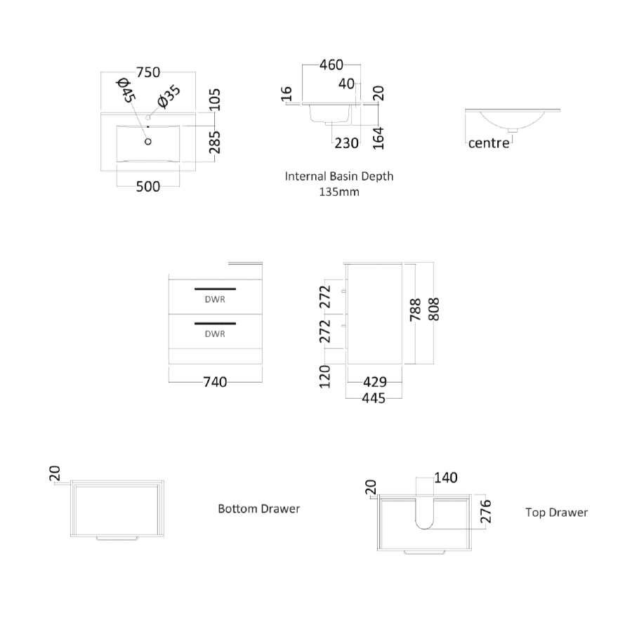 The Parker 750mm Floor Standing Vanity is a compact solution with generous storage. Its Vitreous China top is easy to clean, and the two drawers offer soft close convenience. Cabinet available in White, Black, or Oak, with three handle finish options. Built in New Zealand using moisture resistant board and FSC® certified NZ Radiata Pine.