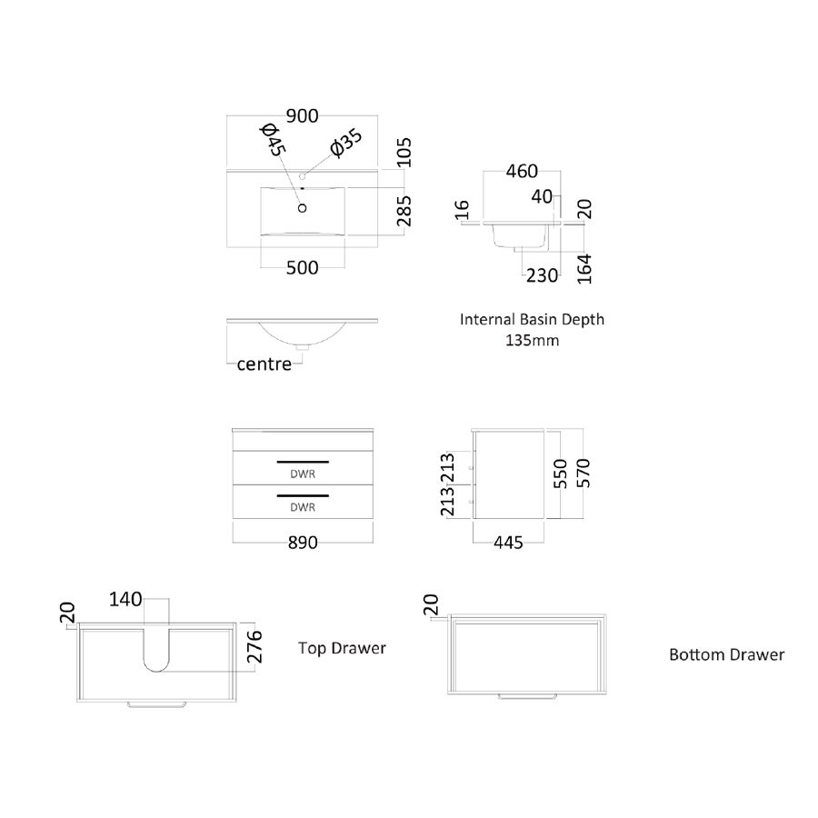 The Parker 900mm Wall Hung Vanity with Two Drawers brings practicality and modern style to your bathroom. A tough Vitreous China top, floating design, and soft close storage make it an ideal choice. Made in New Zealand from FSC® certified timber and moisture resistant materials. Choose from cabinet finishes in White, Black, or Oak and three handle options.